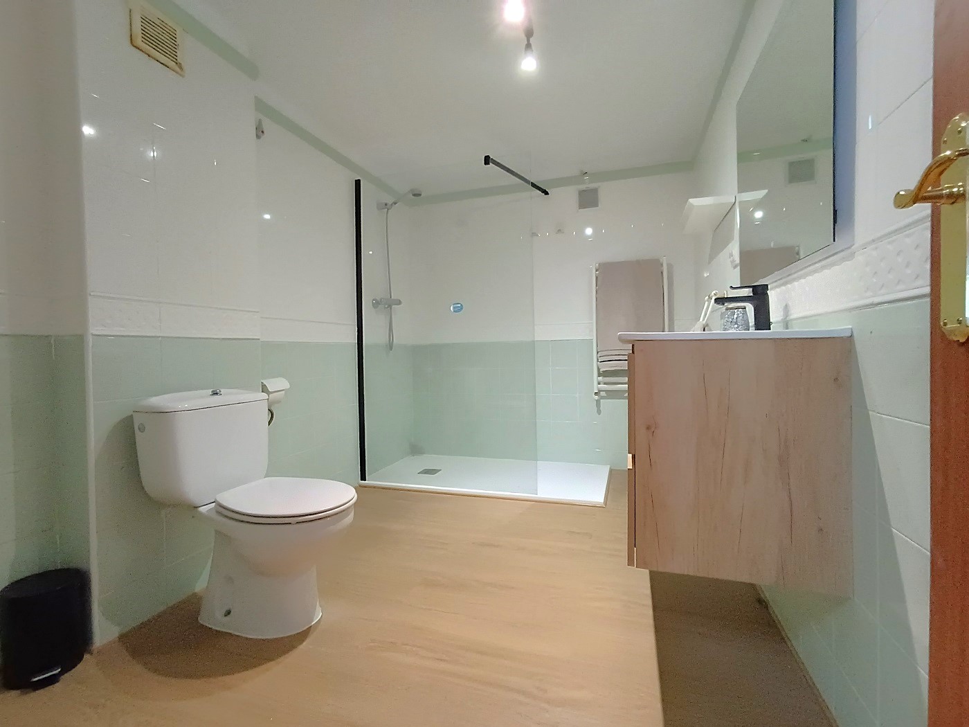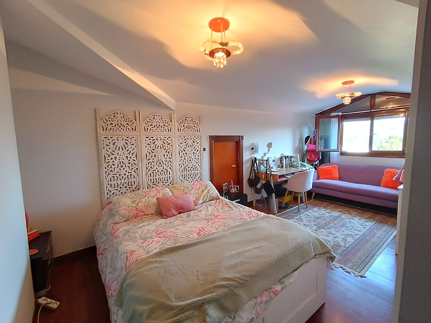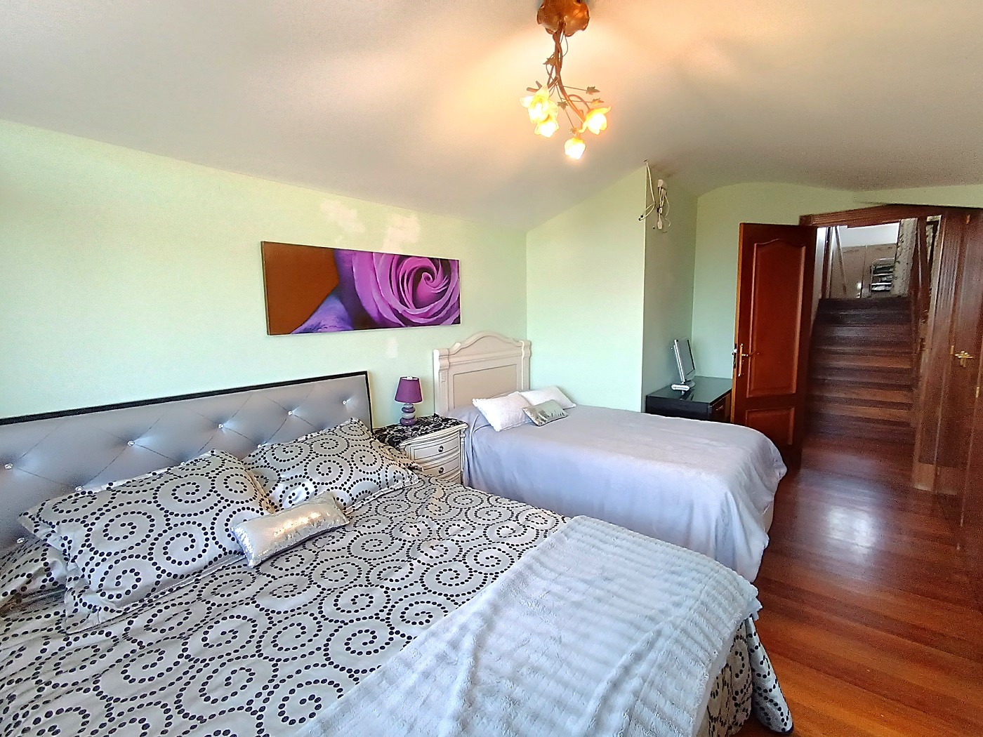 La primera planta cuenta con dos habitaciones, una de ellas una magnífica suite que anteriormente eran dos estancias, ahora unidas para dar lugar a un dormitorio principal con vestidor y baño privado. Además, dispone de otro baño completo que da servicio al resto de la planta.